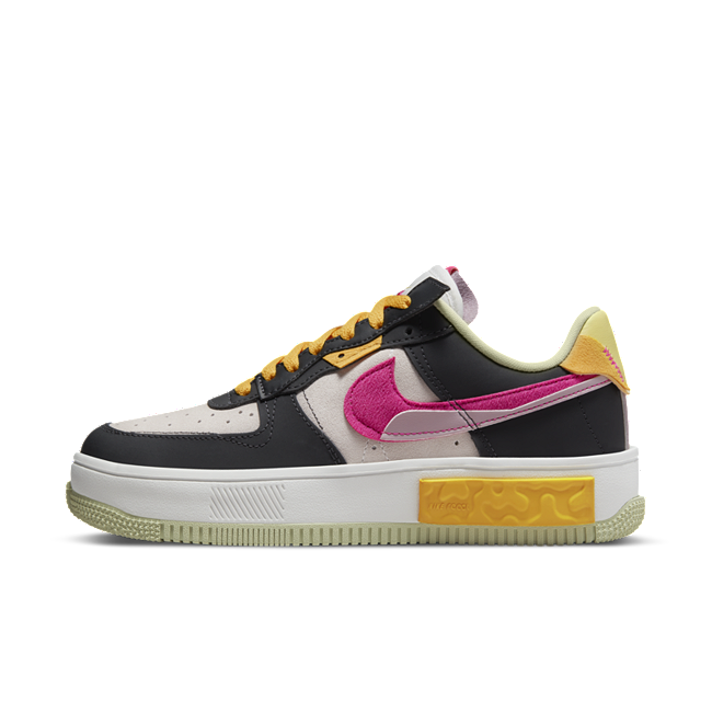 En la parte superior, también hay una serie de elementos de diseño atractivos que definen las Air Force 1 Fontanka, uno de los cuales son sus secciones de cuero real y sintético con formas inusuales. Además de los paneles clásicos en la parte delantera, media y trasera del pie, la lengüeta tiene una capa adicional que comienza en el segundo ojal de la principal. A continuación, se extiende más allá del ojal superior, culminando en un borde alado. Una pequeña pieza de material sobresale entre estas dos capas alrededor de la mitad de los cordones, pareciendo casi una extensión del swoosh, al que casi toca. En zapatillas como las Archeo Pink, las tres secciones del ojete son del mismo tono, en este caso un atractivo rosa rosado, mientras que otras, como las Flowerscolourway, que tienen una pequeña pieza amarilla encajada entre una capa superior blanca y un panel inferior con flores, utilizan una variedad de colores en ellas.